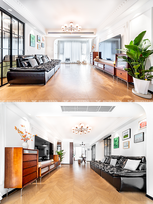 ?? 以黑白棕為主色調(diào),搭配色彩豐富的掛畫、軟裝、燈具等,輕松打造一個復古有調(diào)性的空間。